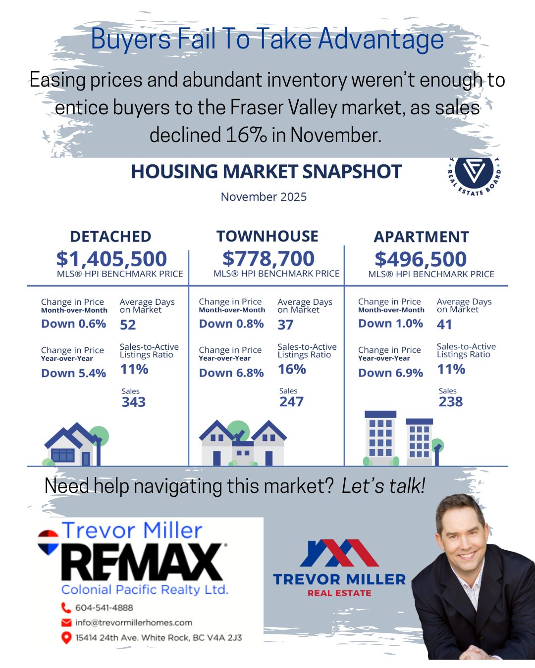 Tags: condos, Fraser Valley, FVREB, home buyers, housing costs, housing market, RE/MAX, real estate, realtor, single family homes, South Surrey, townhouse, Trevor Miller, White Rock